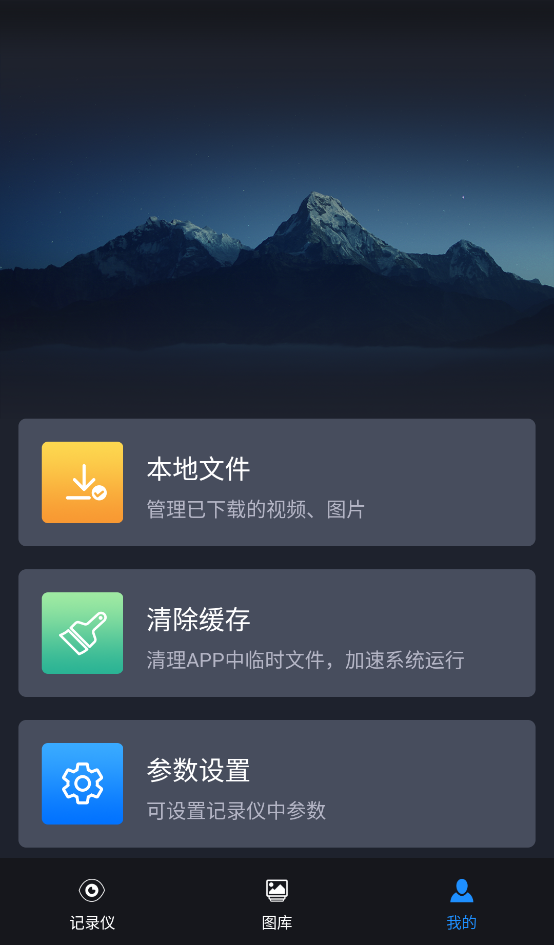点击相册进入回放菜单,用户通过上滑下滑页面,预览视频/照片文件。点击视频文件进入播放状态。在播放过程中支持切换上一个,暂停,下一个播放,文件下载。点击图片菜单可以选择图片,来预览当前图片和图片下载