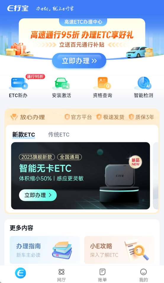 1、ETC一站式服务:在线申办、便捷查账24小时售后贴心守护; 2、ETC+场景:ETC无感加油、ETC智慧停车等更多ETC场景服务; 3、高速路况:高速公路收费站、施工、拥堵等实时路况掌握在手; 4、智慧服务区:服务区加油站、充电桩、汽车维修一键查看; 5、车主服务:年审代办、道路救援、ETC高速通行保,驾乘无忧;e行宝app如何新办ETC和安装激活设备