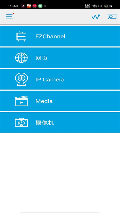 1、打开ezcast安卓投屏软件选择第一个方框,接着我们同时打开投影仪推送宝,接着我们在手机上搜索投影仪发出的ezc开头的无线信号。