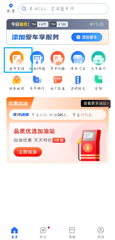 4、然后回到主页点击违章查询,即可查询爱车违章情况。
