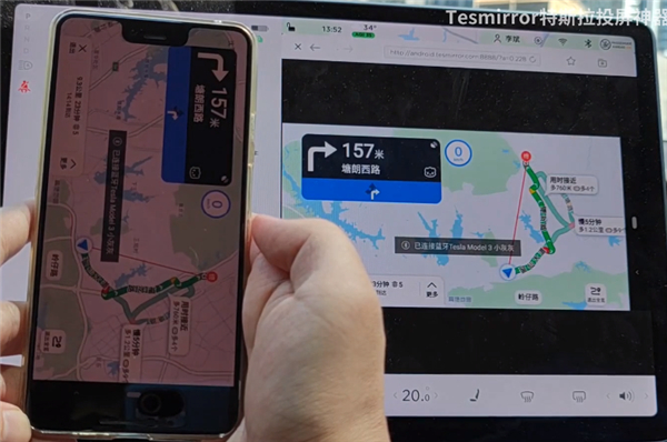 1.投屏网页地址修改为d.tesmirror.com 2.重构了投屏模块核心代码,大幅提升投屏清晰度和流畅度,特别是使用atom车机时 3.支持多点触控,可以双指缩放地图,触控性能提升,基本可以做到直接操作手机的手感 4.投屏界面更新,投屏画面竖屏时靠左,方便操控 5.全屏按钮不再隐藏,停车时可用. 6.激活高级功能后,两分钟后自动息屏.