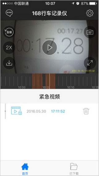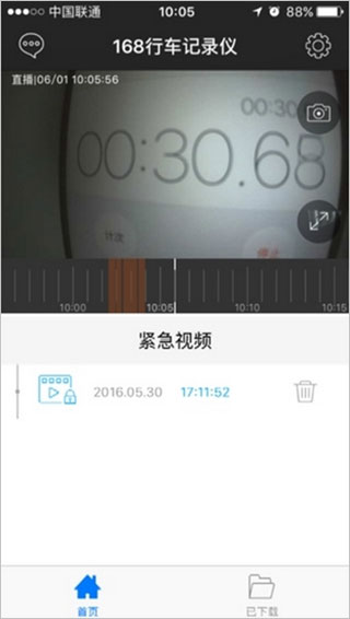 车辆在行驶过程中,且记录仪处在工作状态,当车辆发生碰撞,翻车等紧急状况时,行车记录仪通过重力慼应器可以感知紧急情况发生,从而进入紧急视频的录制状态,此段视频将加锁,循环录影时不被自动删除当APP通过WF连接记录仪时,会在紧急视频区看到该视频,并可以进行浏览、截屏、下载等操作。