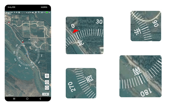 指南(北)针工具即为电子罗盘,该工具是在野外测绘中需要经常用到的工具,它可以让测绘人员在野外轻松辨认方向。