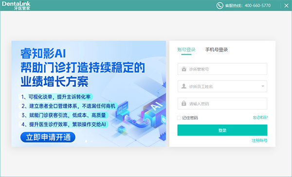 牙医管家官方版是一款基于SaaS专业为口腔诊所设计的一站式管理平台,针对诊所客户流失率高、工作人员效率低、信息易泄露等问题所开发的一站式解决方案软件,而且用户可以通过不同的平台登录,比如在诊所,你可以使用软件查看各种病人的信息,查看预约情况等等,出门在外也可以通过手机端对患者的资讯进行解答。牙医管家专业版采用云端备份数据,安全无忧,原理意外断电、电脑损坏造成的数据丢失等等,还能够自动同步,让你的资料万无一失。同样的,你也可以建立一个非常完整的数据库来为自己形成稳定的客源,不管患者什么时候来,什么时候有牙齿上的问题,都可以通过该软件第一时间获得相关信息,既发展了客源,有能够为患者带来最优质的治疗。