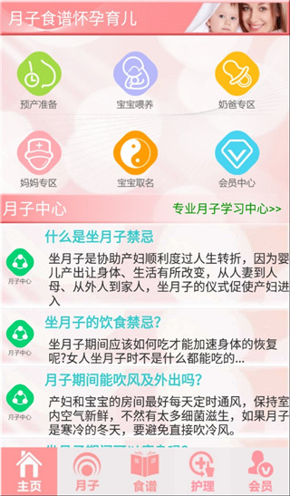 1、月子中心:提供坐月子中的800个问答,可以全方面解决你坐月子期间遇到的问题。 2、月子食谱:提供顺产与剖腹产的所有食谱,解决在坐月子期间饮食问题与注意事项。 3、宝宝护理专家:全方面解析宝宝的护理知识以及宝宝身体与心理健康发育指标。 4、奶爸专区:从父亲的角度全面解析坐月子期间爸爸应该做的事与安排。 5、妈妈专区:全面方位提供妈妈怀孕身体变化情况,宝宝出生前的准备事项。 6、产前准备:提供宝宝产前需要准备的物品列表,可新增,编辑,保存,为宝宝出生做好准备工作。 7、宝宝喂养:详细讲解新生儿出生后饮食特点,分别提供母乳喂养与人工喂养的区别。 8、宝宝取名:为你提供全面,详尽的取名起名信息,解决取名难的问题。软件特色
