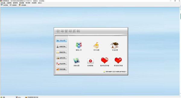 一、系统设置:管理人员、奶厅设置、牧舍设置、参数设置、疾病管理、免疫保健设置、免疫保健提醒二、牧禽管理:牧禽资料、场内移动、离场登记、牧舍情况、牧舍明细、整场移动、产乳登记、日产乳明细