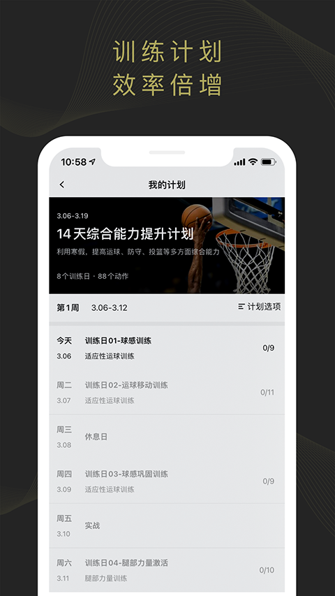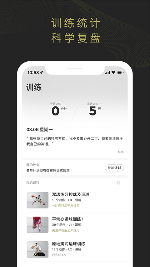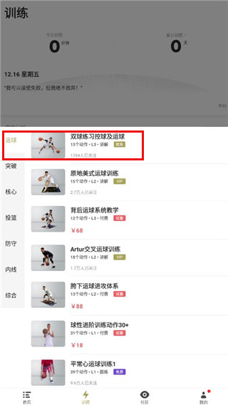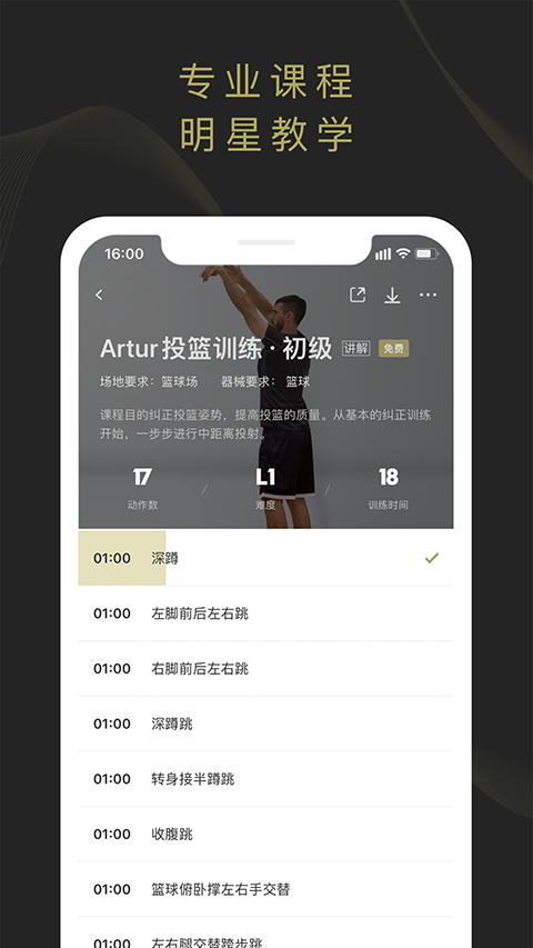 1、科学统计 记录训练进度,科学制定训练计划 2、视频跟随教学 跟随视频同步训练,实时语音提醒 3、系统课程 分阶段训练,让你从入门新手到球场大师 4、明星课程 “篮球网红”,“CUBA”等多项教学供你选择更新日志