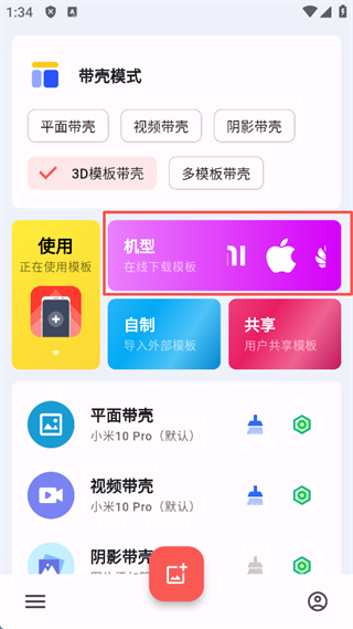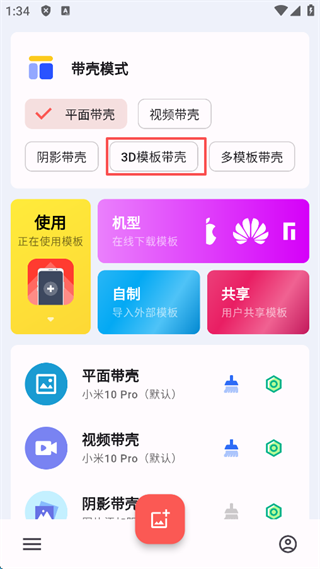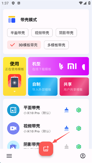 1、支持背景自动取色 2、支持背景高斯模糊 3、支持自定义背景颜色 4、支持监听系统截图进行自动带壳截图 5、支持导入第三方模块包(含作者适配模块与网友上传模块) 6、支持导入自定义模块(例如相框、手机模块等等) 7、支持编辑已经适配模块 8、支持普通生成模式/拉伸模式 9、支持修改生成图片路径带壳截图Pro最新版app怎么制作3d模板