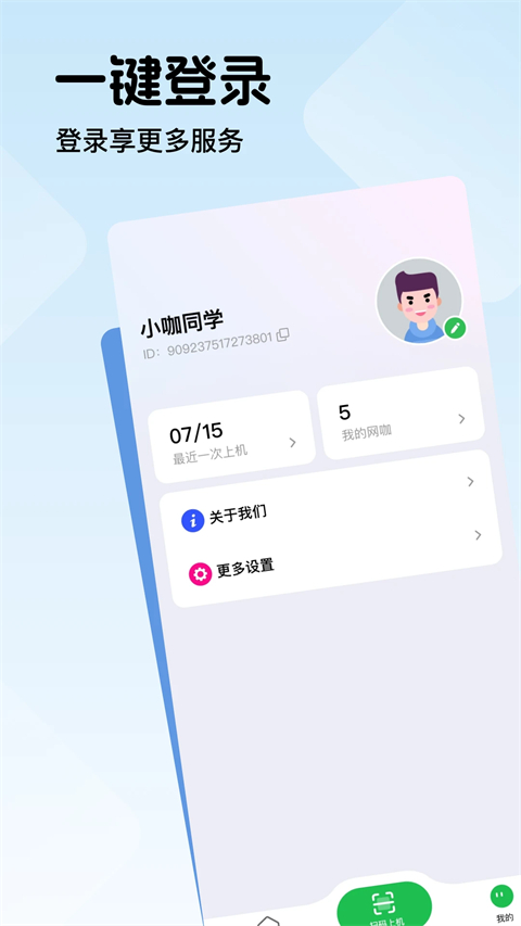 1、为广大用户提供了便利性的同时,也开辟了网吧在移动终端上推广的平台。 2、采用主流的算法技术,推荐符合您喜爱的视频内容。 3、为网咖商户提供便捷扫码上机功能,还有海量精选优质视频。 4、可以一键预订网吧的座位与上机时段。更新日志
