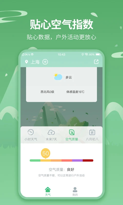 晴天雨天各项指数综合看,根据天气轻松安排户内外活动。
