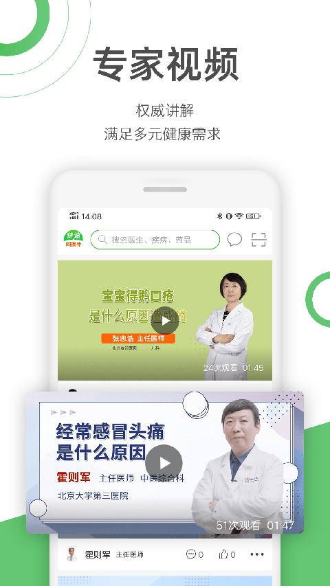 1、【电子病历】 上传病历到云端,永不丢失,随时查看,再也不用在纸堆翻找病历 2、【在线问诊】 7x24小时随时在线,全国70000位执业医生全科覆盖,快速为你提供精准的健康咨询 3、【病友社区】 超过500个病友群、40000位病友,超过19万医生可在线预约挂号,覆盖全国4690家医院 4、【本地医疗】 实时查找附近医院、药店、医生、病友,获取周边更多健康服务 5、【语音搜索】 说即应,省心省力,最智能最海量的健康搜索平台,语音查找疾病、药品等优质健康知识 6、【家庭医生】 挑选您喜爱的私人医生,查看医生视频、好评率、患者印象和评价,获得个性化的医疗服务常见问题