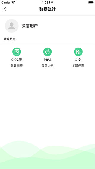 6、用户还可以查询我的数据统计,里面统计了用户的累计缴费金额、欠费比例和全部停车次数。