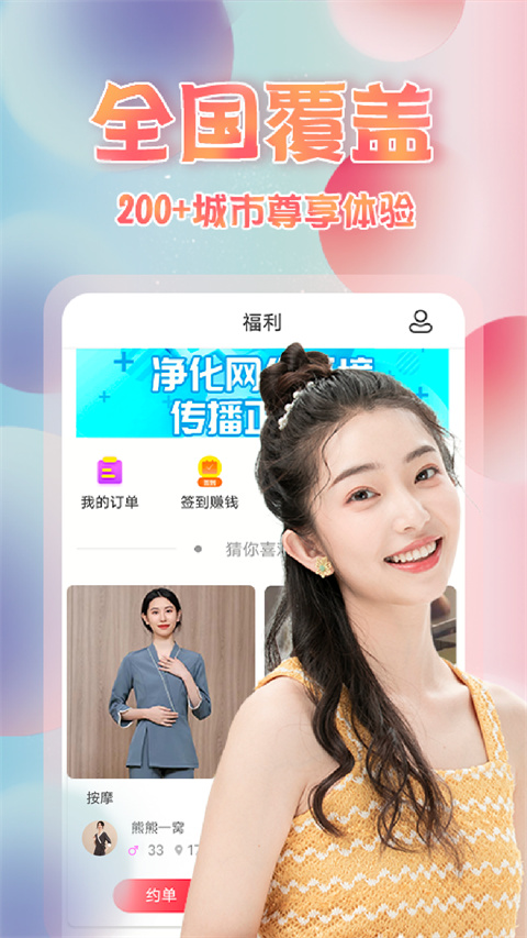 1、打开约单app,在首页上有着陪吃饭,陪看电影等等,你可以查找你的需求,点击您看中的人;