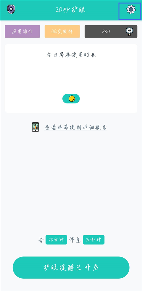1、进入20秒护眼App,点击右上角【设置图标】。