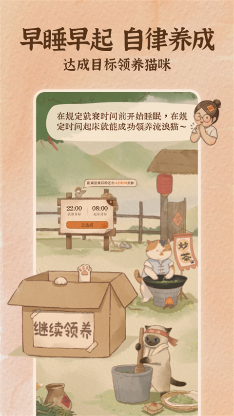 2、设置好作息时间,只要按照设置好的作息时间来执行就可以领养一只流浪猫