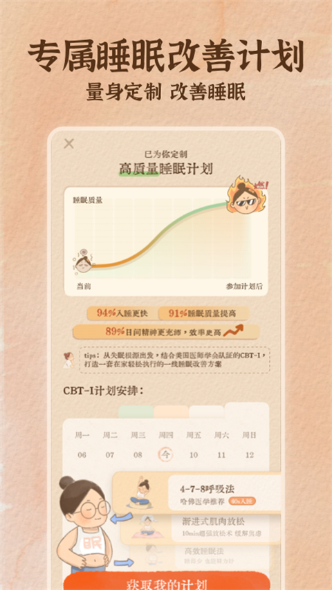 在首页点击改善,进入即可获得自己的专属睡眠改善计划