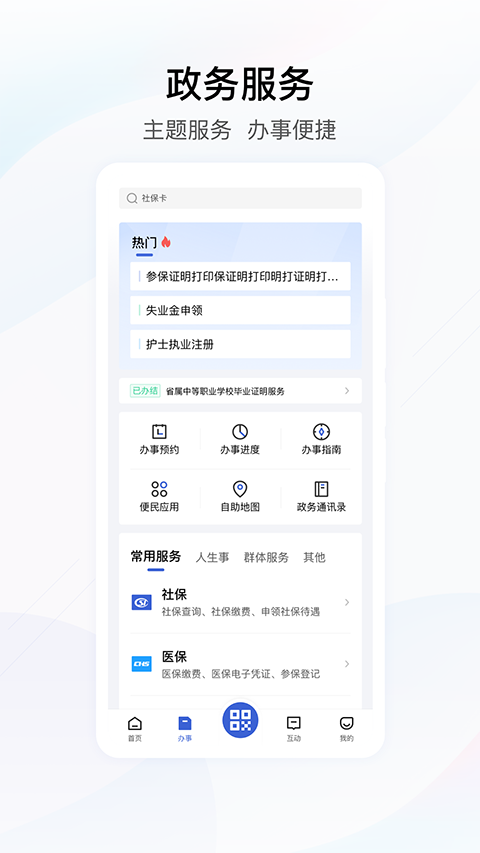 1、人社服务专区 为您提供社保查询、社保缴费、人才、就业等服务。 2、医保专区 为您提供医保查询、居民医保缴费、异地就医等服务。 3、公积金专区 为您提供公积金查询、提取、贷款等服务。 4、不动产登记专区 为您提供不动产信息查询、不动产业务网上办等服务。 5、教育专区 为您提供考试成绩查询、学区查询、证书查询等服务。软件特色