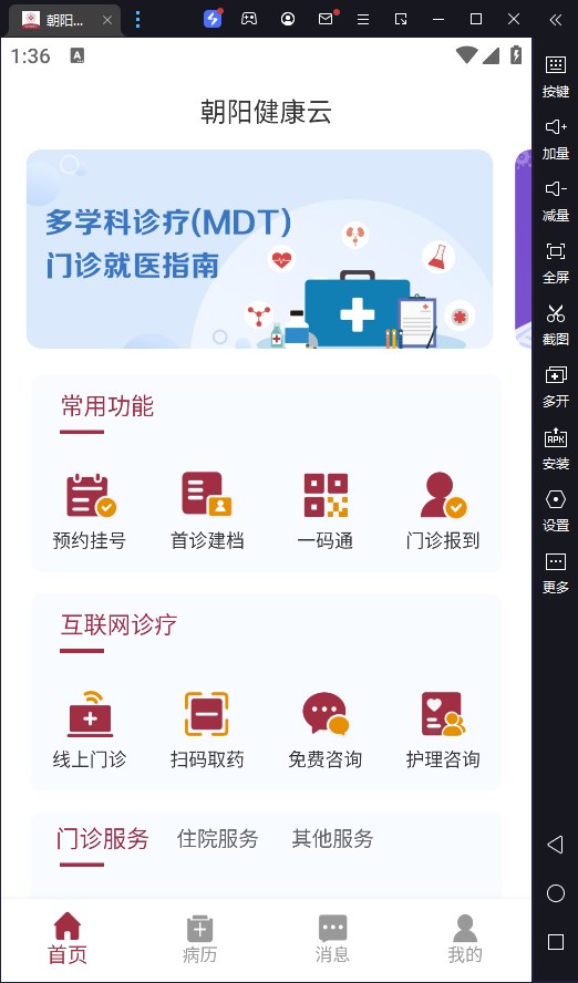 朝阳健康云电脑版借助模拟器在电脑上运行的一款医疗健康软件,旨在落实"互联网+医疗健康"战略,提升医疗服务水平,为用户提供更便捷、高效的医疗服务体验。用户通过使用朝阳健康云电脑版一键绑定医保卡,就能快速查阅在朝阳医院的就诊记录,包括病历、处方、检验和检查报告等重要信息。