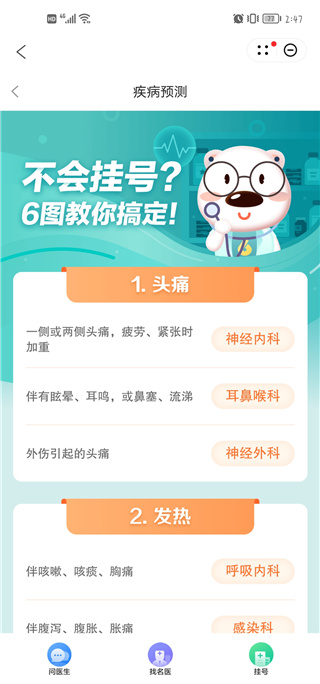 3、在科室选择的下方有一个挂号指南供大家观看学习;