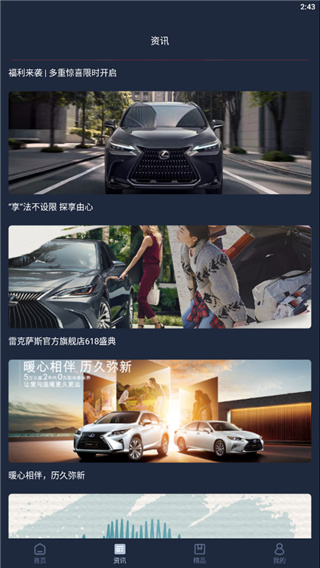 3、精品:查看及收藏雷克萨斯纯正精品,并可联系当地经销店或访问LEXUS雷克萨斯天猫旗舰店购买。