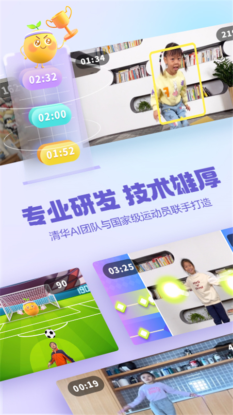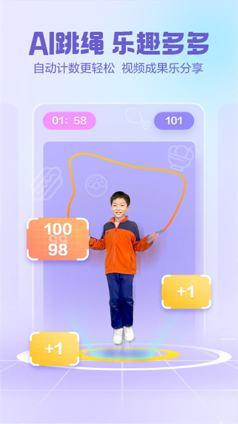 1、AI跳绳 乐趣多多 可根据自身需求,选择计数、计时、热量消耗、自由等四种跳绳模式,帮助孩子达到青少年体测标准。自动计数功能让跳绳更轻松,还能将视频成果分享给朋友们。更有节奏钢琴、小橙酷跑、躲进盒子、音乐星球等多种运动形式,趣味无穷。 2、智能识别 智慧反馈 准确捕捉人体动作,让趣味体验与运动效果深度结合。运动结束后,深入分析儿童的运动表现的量化数据,致力于有效地纠正孩子的错误动作,评估和反馈运动能力水平,为孩子的运动能力发展提供科学的参照和合理地指导。 3、专业研发 技术雄厚 毕业于清华大学的人工智能国家重点实验室的研发团队与国家一级运动员组成的专业体育研发团队联手打造,致力于为孩子们提供全方位的家庭趣味运动解决方案,随时随地提升孩子的运动表现,记录快乐成长每一步。 4、全新视觉 好看好玩 过硬的技术支持,将真实人像快速分割出实际背景,并与虚拟的AI运动交互场景更好的融合在一起,给孩子们带来有趣的沉浸式运动新体验。充满童趣的视觉风格与设计,让产品更好的激发孩子的兴趣,养成勤运动的好习惯。导。洪恩爱运动APP使用说明: