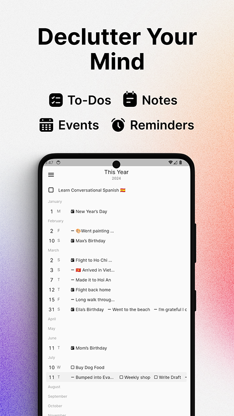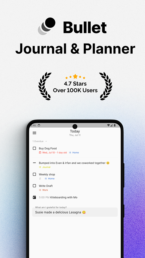 1、Bullet APP是一款极简风格的日记记事本软件,可以将每日的待办事项完整地记录下来。 2、为用户带来便捷的搜索检索功能,方便用户查找目标事件,可以根据自身需求来选择排序方式。 3、最大亮点在于其极简风格,没有花哨的修饰。 4、更像日程表或时间表,但它非常灵活,你可以按照你的想法添加或删除任何不适合你的内容。更新日志