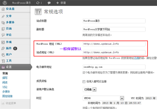 都很简单,只需注意,一般不要更改 WordPress 地址 和站点地址,除非你要换域名