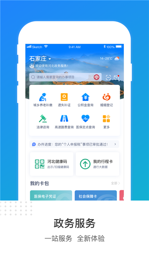 1、掌上政务大厅:政务在线办,无需多跑腿。 2、城市查询助手:社保、公积金、违章,一键轻松查询。 3、便民信息平台:气象预报、校园招聘会信息早知道。 4、智慧生活管家:水电燃暖费用轻松缴,交通路况随时看。 5、信息服务:冀时办app聚合各级各部门资源,打造移动资讯传播主渠道。 6、网上办事:冀时办app将市县乡网上办事统一平台搬到手机上,使群众办事更加方便快捷,在政民互动方面,整合公众参与渠道,并推出“随手拍”、“有奖爆料”等激励机制,使群众咨询问题、反映诉求、提交意见的渠道更为畅通。 7、生活服务:冀时办app将突出精品服务、交通出行、医疗卫生、住房保障、公安便民、涉税服务、文化教育、环境气象、旅游等服务主题,使公众通过线上“一张网”、线下“一扇门”获得个性化、便捷化、均等化的公共服务。冀时办app怎么办无犯罪证明