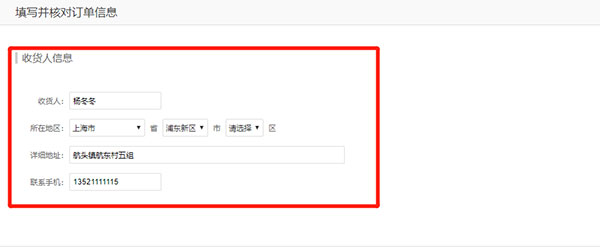 1)填写您的收货信息