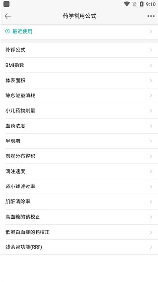 3、点击药学常用公式,可以看到药学的输入参数等公式;