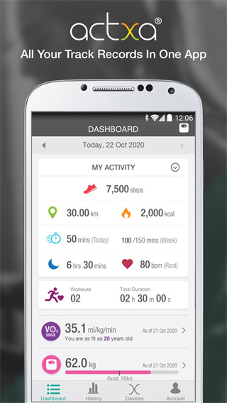 1、跟踪您的日常活动的智能方式 起来,出去走走。绘制您的进度并设定个人目标以保持动力。使用 Actxa 应用程序,只需轻按一下按钮,您就可以个性化您的个人资料、同步您的每日统计数据、更新您的体重和监控您的睡眠模式。 2、移动更多,晚上睡觉睡得更好 使用 Actxa 活动追踪器监测您夜间的睡眠模式并分析您的睡眠质量。设定睡眠目标以改善您的睡眠习惯。 3、通过历史更好地了解自己 通过易于阅读的历史图表同步您的每日统计数据并了解您的进度。查看一段时间内的健身和睡眠趋势。 4、更好的体重管理 使用 Actxa Sense 智能体重秤绘制和监控您的体重。设定目标以达到您的理想体重,并随着时间的推移查看趋势以更好地管理您的体重旅程。 5、始终轻推 在我们的 Actxa 活动追踪器上自定义通知并设置静音提醒,轻轻振动不会唤醒您的伴侣。 6、击中完美的节拍 使用支持心率监测的 Actxa 追踪器,检查您的静息心率并监测您的心率,以通过不同的心率区进行有效的卡路里燃烧追踪。软件亮点