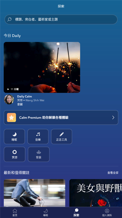 1、7天跟踪引导。 2、10个身临其境的自然场景。 3、令人心旷神怡的音乐曲目。 4、Calm每月添加新的声音。更新日志