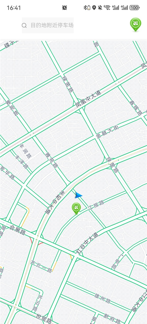 1、进入APP点击停车定位当前位置,并搜索目的地或附近停车场。