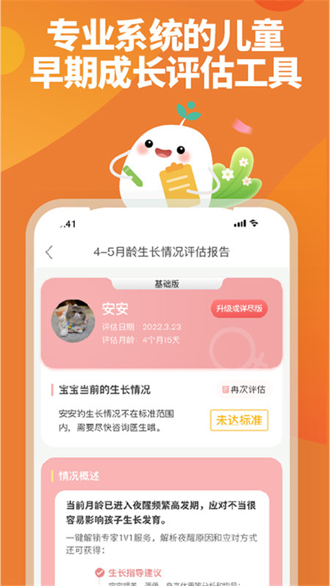 1、专业知识 以崔玉涛医生150万余字的育儿著作为基础,提供专业的孕期护理、饮食、胎儿发育、健康和宝宝发育、喂养、辅食、护理和疾病等方面知识指导,根据妈妈孕周及宝宝年龄:定制化每日知识。 2、主题直播 每周固定直播,崔玉涛医生与各界专家一起讲解您在怀孕、育儿中遇到的各种问题,在线互动解答妈妈疑问。 3、成长测评 0-6岁宝宝成长发育测评,5大领域图表化分析,帮爸爸妈妈全方位了解宝宝的大运动、精细动作、语言、社会适应和认知能力发展情况。 4、专家咨询 崔玉涛医生带领育学园专家咨询团,兼顾儿童身体+心理发育特点,针对每个孩子具体情况提供科学的健康建议及育儿指导。 5、主题专栏 宝宝过敏全解答、辅食从零添加主题课、早产儿呵护专栏、月子护理全攻略、养育高颜值宝宝主题课。软件特色