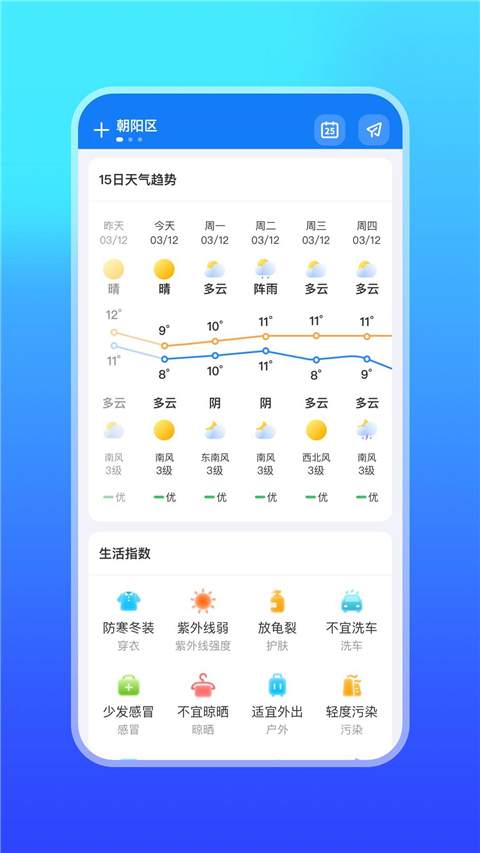 4、设置完成之后,在天气页面下还有着24小时的天气预报情况以及15日天气趋势;