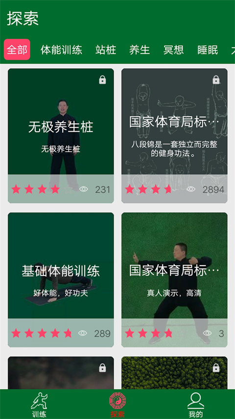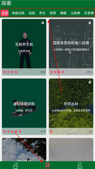 3、我们点击探索版块,里面有非常多的武术内容