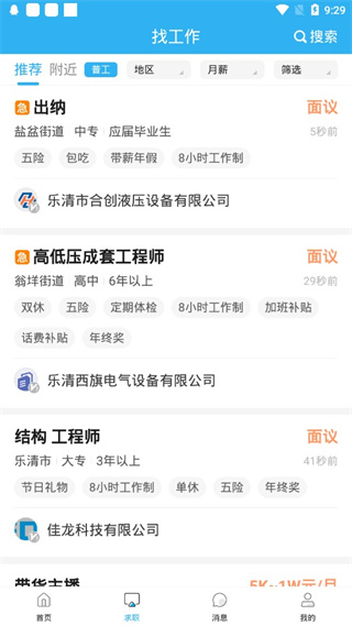 1、打开乐清人才网app,如果想要找工作的话,可以直接点击找工作;