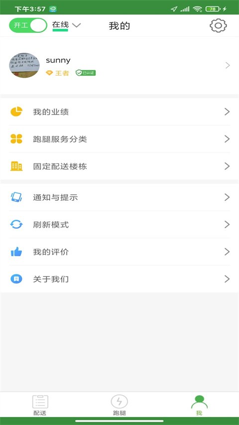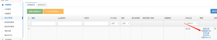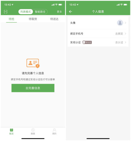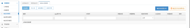 2、配送员需要自己在配送员app个人中心提交实名认证资料,总部管理后台进行实名认证审核通过才能接单。