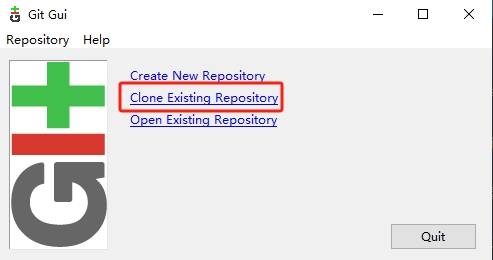 1、在本地新建一个文件夹test,选中后点击右键,选择Git GUI Here出现下图,选择第二个,克隆已经存在的仓库;