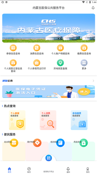 内蒙古医保app,一般又称内蒙古医保服务平台app。该平台主要为内蒙古自治区医保参保人员提供参保信息、就医记录信息、个人账户明细查询等个人信息查询、消费信息,提供灵活就业参保登记,特殊药品登记,城乡居民参保登记,门慢门特登记等经办功能,方便内蒙古居民从手机上即可完成查询缴费等一系列操作,从而进入电子支付新时代,更好的为内蒙古人的健康保驾护航。