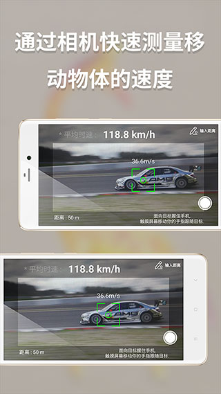 4、速度测量工具,一般是利用相机的成像原理,面向目标握住手机,触摸屏幕移动你的手指跟随目标。
