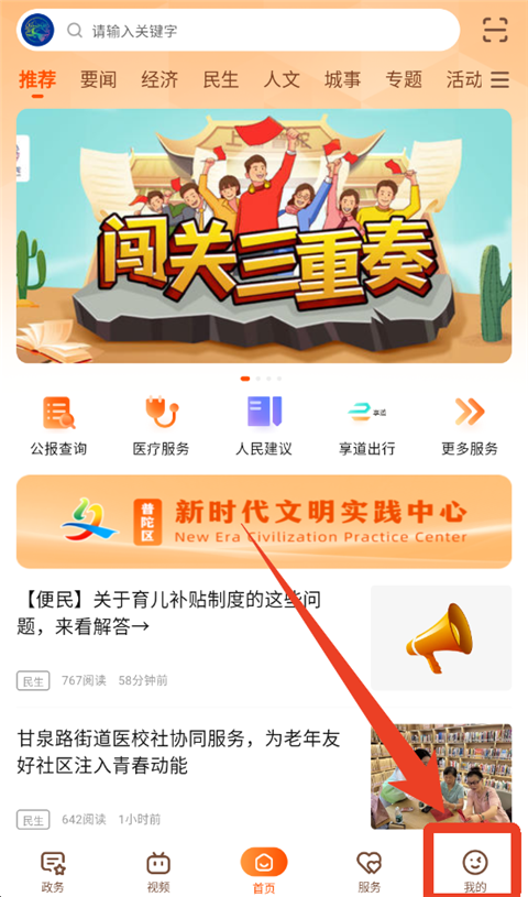 2、进入到首页,这里有推荐、要闻、经济、民生、人文等多个板块;