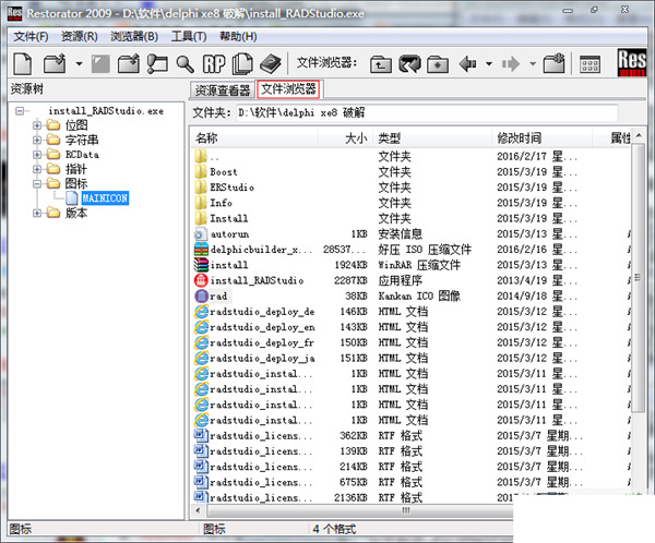 3.打开左边资源树中,你要修改的东西,比如图标,在右边就可以看到图标信息。