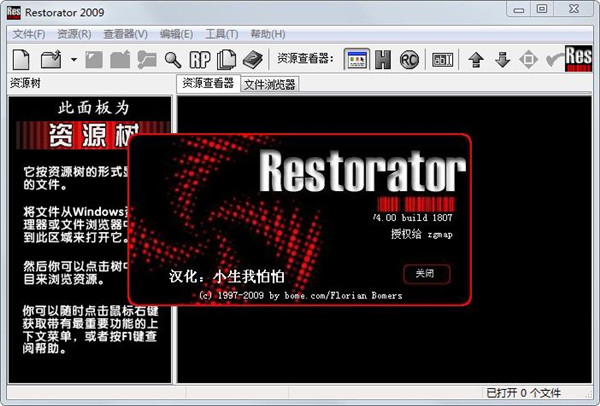 restorator2009中文免安装版是一款软件的软件汉化工具,它可以帮助用户更新、增加和删除文本、图像、声音、视频、版本号、对话框及菜单等任何应用程序中的资源,该软件还可以用作翻译、本地化、定制化、设计改进及开发,对于delphi和C程序的支持最为突出。相比较exescope,它还可以采用拖拽的方式来完成资源的导入和导出,可以批量修改资源的语系,内置的汉化补丁生成器,还可以利用资源补丁创建一些不受版权限制的补丁。除此之外,软件还支持exe、dll、res、rc、dcr等格式文件的修改,满足用户对于文件格式转换的大多数需求。同时,软件功能丰富,内置功能表、对话框、字串、游标、图示、点阵图等,让用户使用时能够一目了然,喜欢这款汉化工具的用户欢迎下载体验!