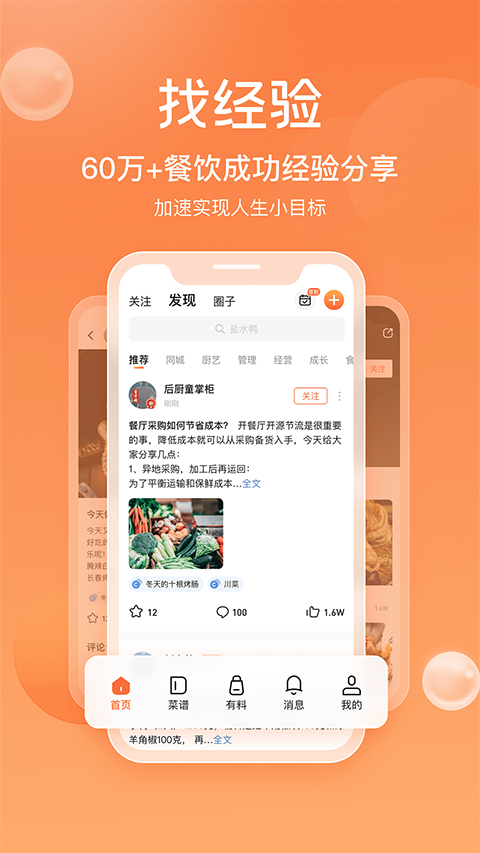 1、厨师社区:发布专业菜式,获得其它厨师朋友的点赞、评论交流,提升厨艺。 2、话题专区:定期更新主题活动,参与赢奖品,交朋友。 3、人气周榜:看看本周最受欢迎的厨师都是谁。 4、厨值任务:完成每日任务获得厨值,提升个人等级,成为身边人仰慕的名厨。 5、产品试用:优质调味料的样品申领,轻松搞定菜式创新。更新日志