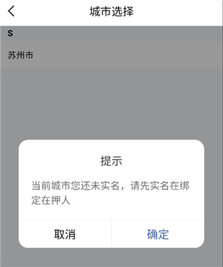 5、在城市选择中,点击苏州市,然后会提示实名认证。