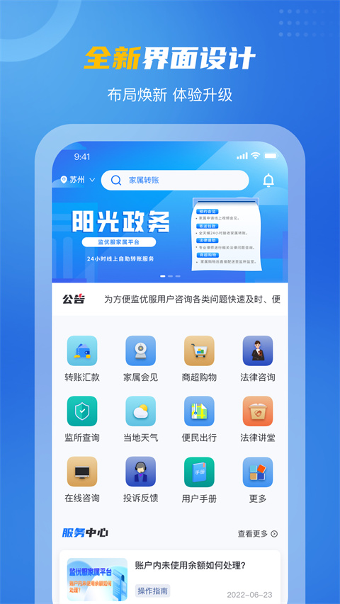 1、包括的范围比较的广泛,用户可以占领很好的使用。 2、软件的操作简单,对里面的各种办理业务非常的快速。 3、包括给在押人员去进行汇款,里面有一定的明细记录。 4、用户可以随时切换或添加账户,以便能更方便的使用。 5、可在线实现监管咨询,方便用户能及时了解监管的详情。 6、支持用户在线支付法律事务,便于及时解决遇到的问题。更新日志