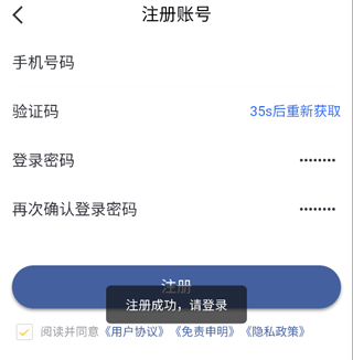 2、输入手机号、验证码、密码等信息,点击注册即可。