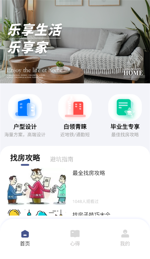 1、乐享家app针对不同客户提供不同的房子,并且自带找房攻略和闭坑指南,帮助用户精确找到自己喜欢的房源。