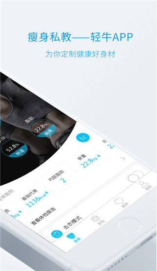 轻牛app是一款非常好的健康管理平台。不同于传统的健康类应用,轻牛可以接入云康宝等多种健康测量设备,获取您的健康数据,然后基于智能云端进行数据分析和追踪,向您提供完善的身体成分图表和健康分析报告。除此之外,轻牛可以接入云康宝等多种健康测量设备,获取您的健康数据。
